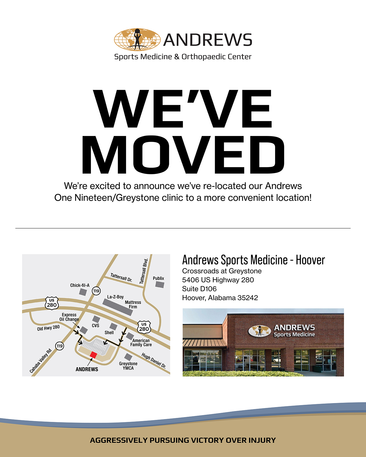 Andrews Sports Med On Twitter We Ve Moved Our Hoover Clinic To A New Location Amp Staying Close We Re Now Located At The Corner Of Highways 280 Amp 119 Our New Address Is